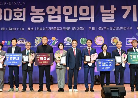경북도, 제30회 농업인의 날 기념식 개최 [경북도 제공]경상북도가 한 해 동안 고생한 농업인들에게 감사한 마음을 전하고, 우리 농업의 소중함을 널리 알리기 위해 11일 경북여성가족플라자 대강당에서 제30회 농업인의 날 기념행사를 개최했다. 매년 11월 11일은 농업인의 날로 한자 11(十一)을 합치면 흙 토(土)가 되기 때문에 농민이 흙에서 나고, 흙을 벗삼아 살다 흙으로 돌아가는 의미를 담아 한자‘土月土日’을 아라비아 숫자로 풀어쓴 것으로 해방 이후 6월 15일을 농민의 날로 부르다 명칭과 날짜가 바뀌며 1997년 11월 11일을 현재 농업인의 날로 법정기념일 지정됐다. 정부와 지자체는 한 해 농사가 마무리되는 수확기에 먹거리 생산에 힘쓴 농업인의 노고를 격려하고, 농업의 공익적 가치를 널리 알리기 위해 이날 기념행사를 개최하고 있다. 이번 기념식에는 이철우 경북도지사, 박성만 도의회 의장, 도의원 및 도내 농업인단체장, 농업계고등학교 교사와 학생 등 700여 명이 참석해 30번째 맞는 농업인의 날을 축하했다. 이철우 도지사는 농업인의 날을 맞아 농업전문기술 개발 보급과 지역농업 발전에 이바지한 농업인(농업명장 2, 농업인대상 10)및 시군(7개 시군), 농업계고등학교(교사, 학생) 대한 포상을 수여했다. 올해 경북 농업명장에는 조원호씨(참외, 성주), 이종기씨(오미자가공, 문경)가 선정되었으며, 10개 부문별 우수농업인에게 주어지는 농업인대상 전체대상은 채소·특작부문 신종순씨(수박, 봉화)가 선정됐다. 부문별 수상자는 식량생산부문 이기형씨(포항), 친환경농업부문 류희일씨(상주), 과수·화훼부문 박재인씨(안동), 농산물수출부문 조규훈씨(영천), 농산물가공‧유통부문 이두현씨(김천), 축산부문 박동언씨(청도), 청년농업인부문 인성훈씨(상주), 공동체활성화부문 박일우씨(구미) ⑨여성농업인부문 김수미씨(경산)가 선정되었다. 경상북도 농업명장 성주군 조원호(58세)씨는 출하량과 출하시기를 조절하는 등 저온기 참외 연속 착과기술과 온·습도 자동조절 시스템 조기 도입으로 고품질 참외 생산에 힘쓰고 있으며, 문경시 이종기(70세)씨는 오미자를 활용한 와인, 증류주 등 다양한 가공 기술을 접목해 제품화에 성공하였으며 계약재배를 통해 지역 농가 소득 증대에 이바지하고 농산물 가공·양조·증류 분야의 성공 모델로 지역 농업인의 가공산업 진출 확대에 이바지한 공로를 인정받았다. 올해의 경북 농업인대상 전체 대상(채소·특작부문)에 선정된 봉화군 신종순(52세)씨는 시설 수박의 컨테이너를 활용한 반 양액재배 실증을 통해 연작 장해를 극복하는 등 봉화 재산수박 명성을 알리고 소득 창출에 이바지했다. 특히 경북도에서 핵심적으로 추진하고 있는 농업대전환 혁신모델 지역의 리더로서 청년농업인 유입을 선도하는 등 지역농업의 새로운 성장 동력을 주도하는 공적을 높이 인정받아 대상에 최종 선정되었다. 2025년 시군 농정평가에서는 의성군이 대상을 받았으며, 최우수상에는 영천시(시부), 청도군(군부), 우수상에는 포항·경주시(시부), 예천·봉화군(군부)이 각각 수상의 영예를 안고 부상과 기관표창을 받았다. 이철우 경상북도지사는 “2025 APEC 정상회의를 통해 경북 도민의 저력과 품격을 전 세계에 알리는 계기가 되었다며, 앞으로 이를 발판 삼아 K-농업과 농식품이 세계로 향하는 대전환에 선봉장이 될 수 있도록 경북 농업을 더욱 꼼꼼히 챙겨 나가겠다”고 말했다.…