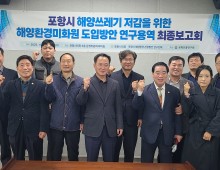 - [포항시의회 제공][포항시의회 의원연구단체인 ‘포항시 해양환경·관광발전 연구단체’(대표 전주형 의원)는 6일 오후 시의회 3층 회의실에서 ‘포항시 해양쓰레기 저감을 위한 해양환경미화원 도입방안 연구용역 최종보고회’를 개최했다. 이번 보고회는 지난 6월…
