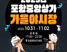 - 포항시는 오는 10월 31일부터 11월 2일까지 3일간 중앙상가 거리 일원에서 ‘2025 포항 중앙상가 가을 야시장’을 개최한다. 지난 여름 7주간 운영된 ‘2025 중앙상가 여름 야시장’의 시민들의 뜨거운 호응 속 지속적 요청에 힘입어, 중앙상가 …